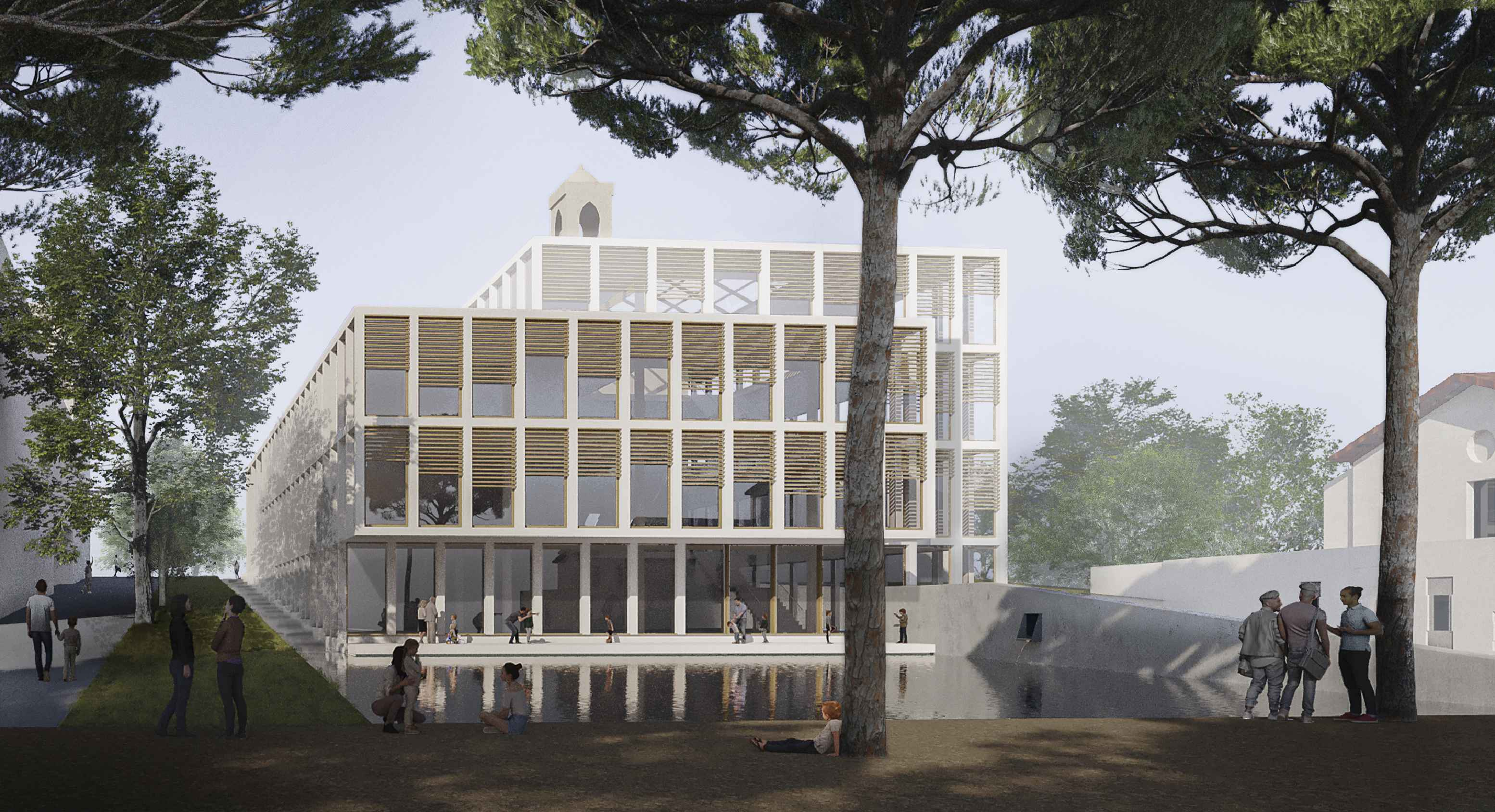 L’aigua també serà un element clau del projecte i s’aposta per crear un rec que acompanyi la façana de la biblioteca entre l’espai públic de La Muralla i la plaça Mas Peraseca amb un nou passeig, així com amb la creació d’una làmina d’aigua al peu de la façana de l’edifici que dona a la plaça Mas Peraseca. Des de BCQ Arquitectura Barcelona, el seu director David Baena, ha explicat que “el repte era integrar el nou edifici en l’entorn, integrant el patrimoni a preservar, recuperant-lo i posant-lo en valor”. A més, Baena ha destacat que “la cultura no ha d’estar tancada a la biblioteca i és per això que és important tenir la biblioteca oberta i connectada a l’exterior”.