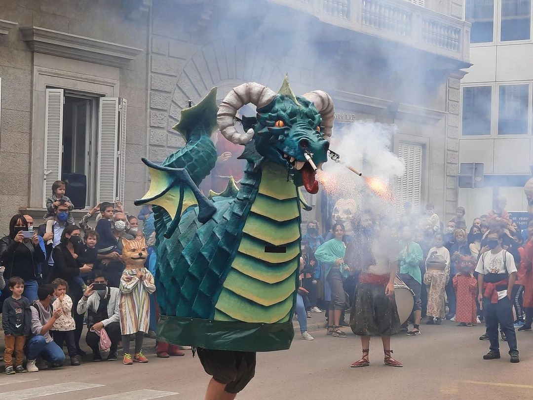 Tot seguit, EL PRIMER TRUC. Viurem amb emoció l’entrada del Drac a l’Ajuntament i el començament de tots els preparatius de la Festa Major.