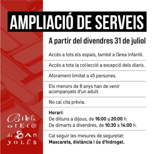 A partir del divendres 31 de juliol: - Accés a tots els espais, també a l'àrea infantil. - Accés a tota la col·lecció a excepció dels...
