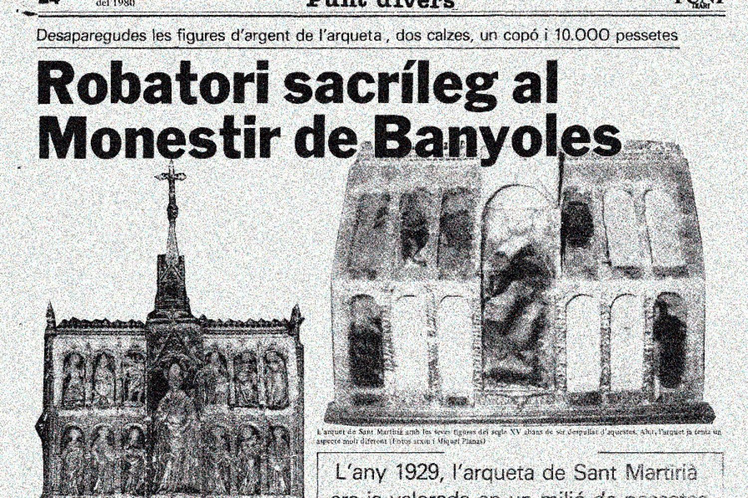 Robatori sacríleg al Monestir de Banyoles